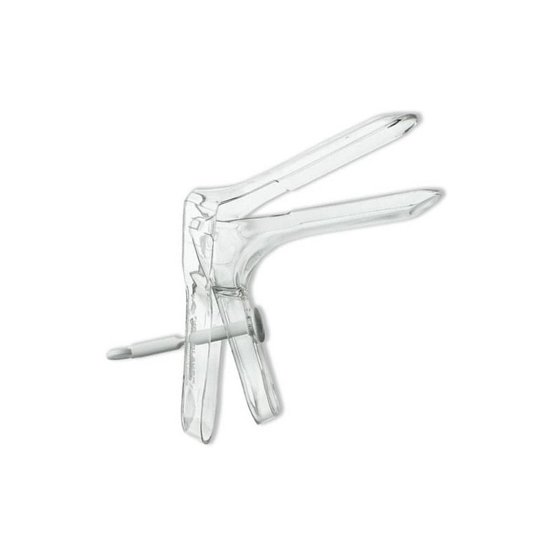 Spéculums en polystyrène transparent sans latex et sans PVC. Système de blocage à clé, rapide et fiable. Disponible en 4 tailles couvrant différentes morphologies :